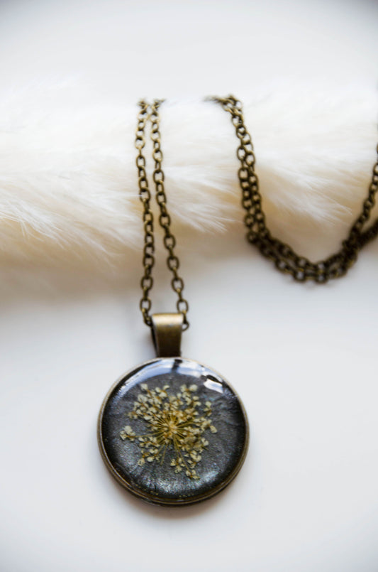 Set de Bijuterii Art Nouveau, Vintage cu Flori Presate Alb