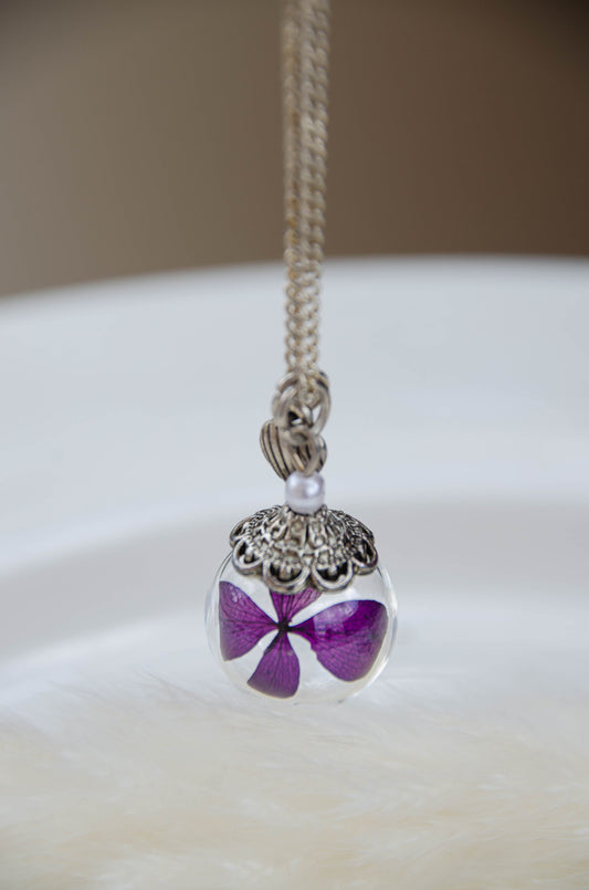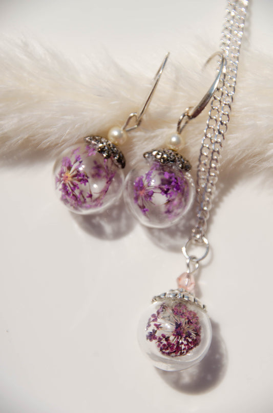 Set Cercei si medalion mov eleganti cu flori reale